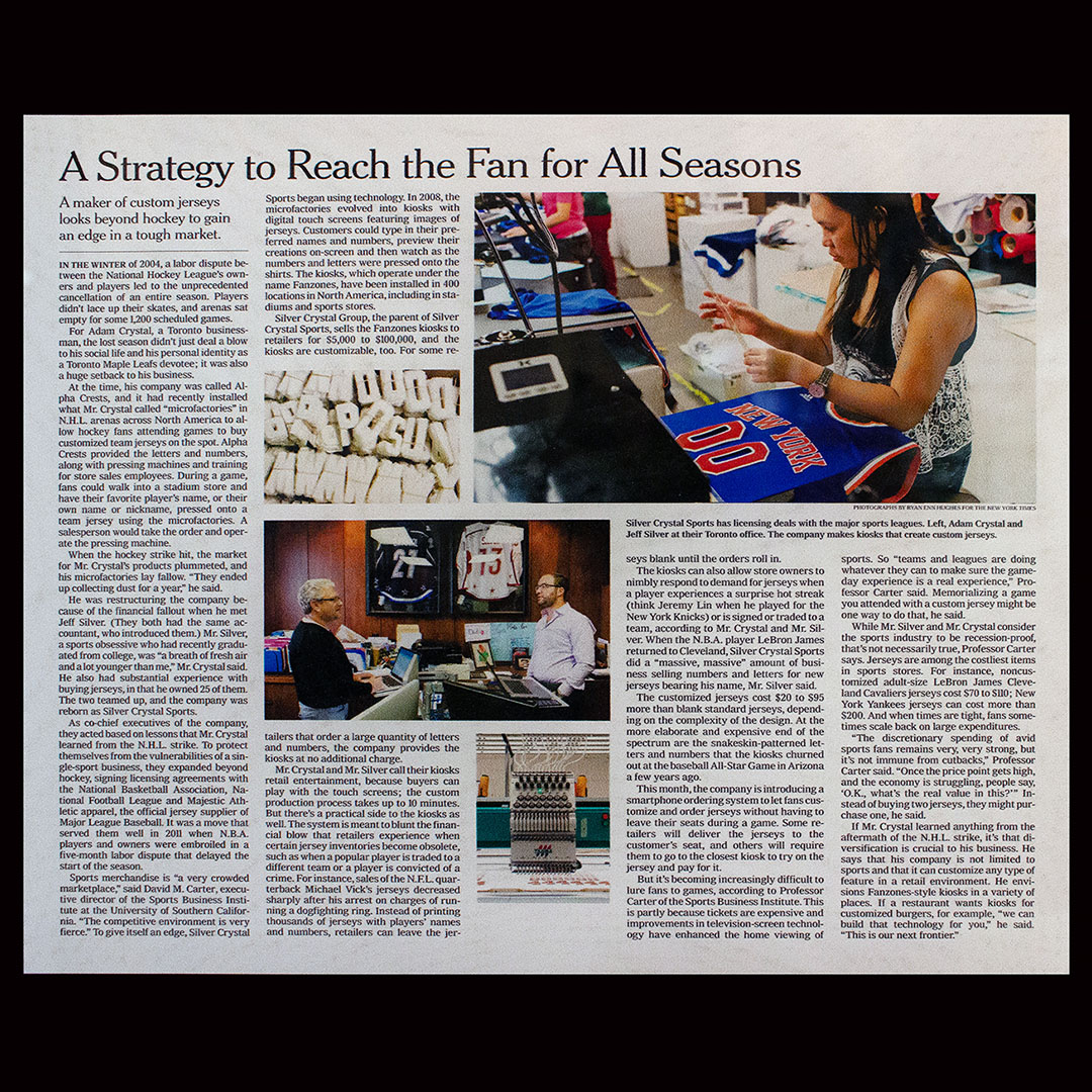The Silver Crystal Group is the global leader in sports apparel customization & retail experience technology connecting consumers with authentic products & engaging customization experiences. The company has been customizing jerseys and apparel for professional sports organizations for over 25 years. Their clients include the majority of teams from MLB, NBA, NHL, NFL, CFL, MLS, Minor Leagues such as MiLB, AHL, and CHL, multiple NCAA schools, and major retailers throughout North America.